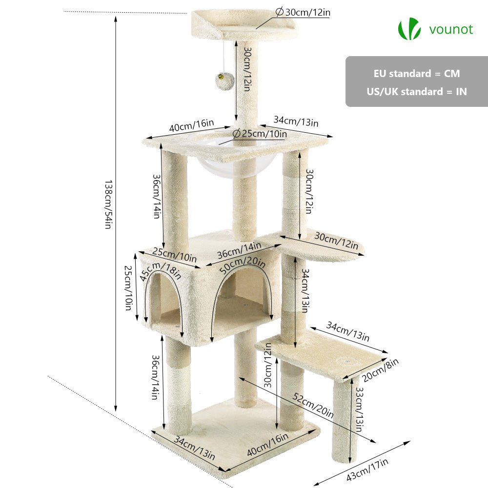 Arbre à Chat 138cm avec Griffoir Plateforme Niche et Capsule Spatiale beige