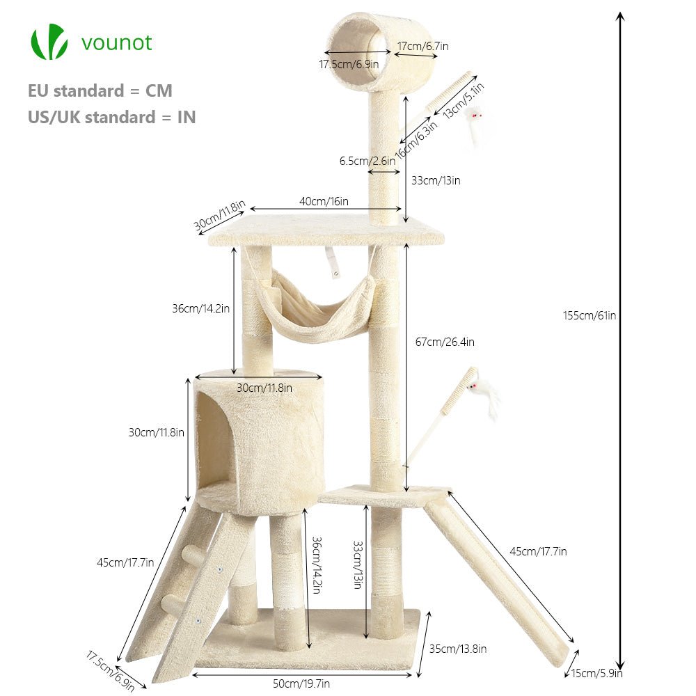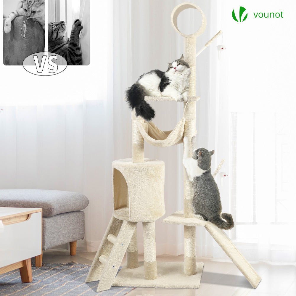 Arbre à Chat 154cm avec Griffoir Plateforme Niche XXL Beige