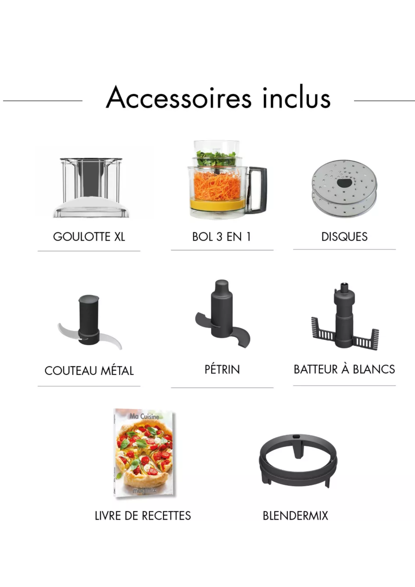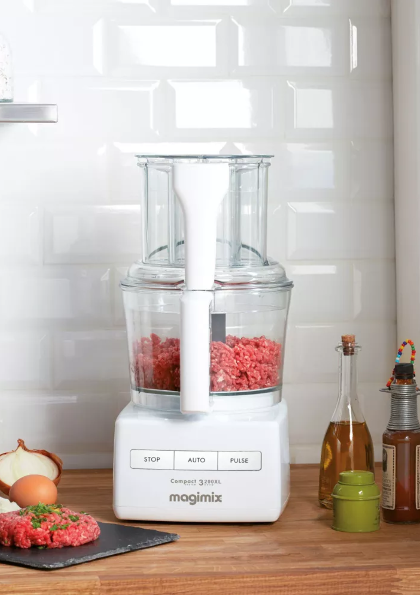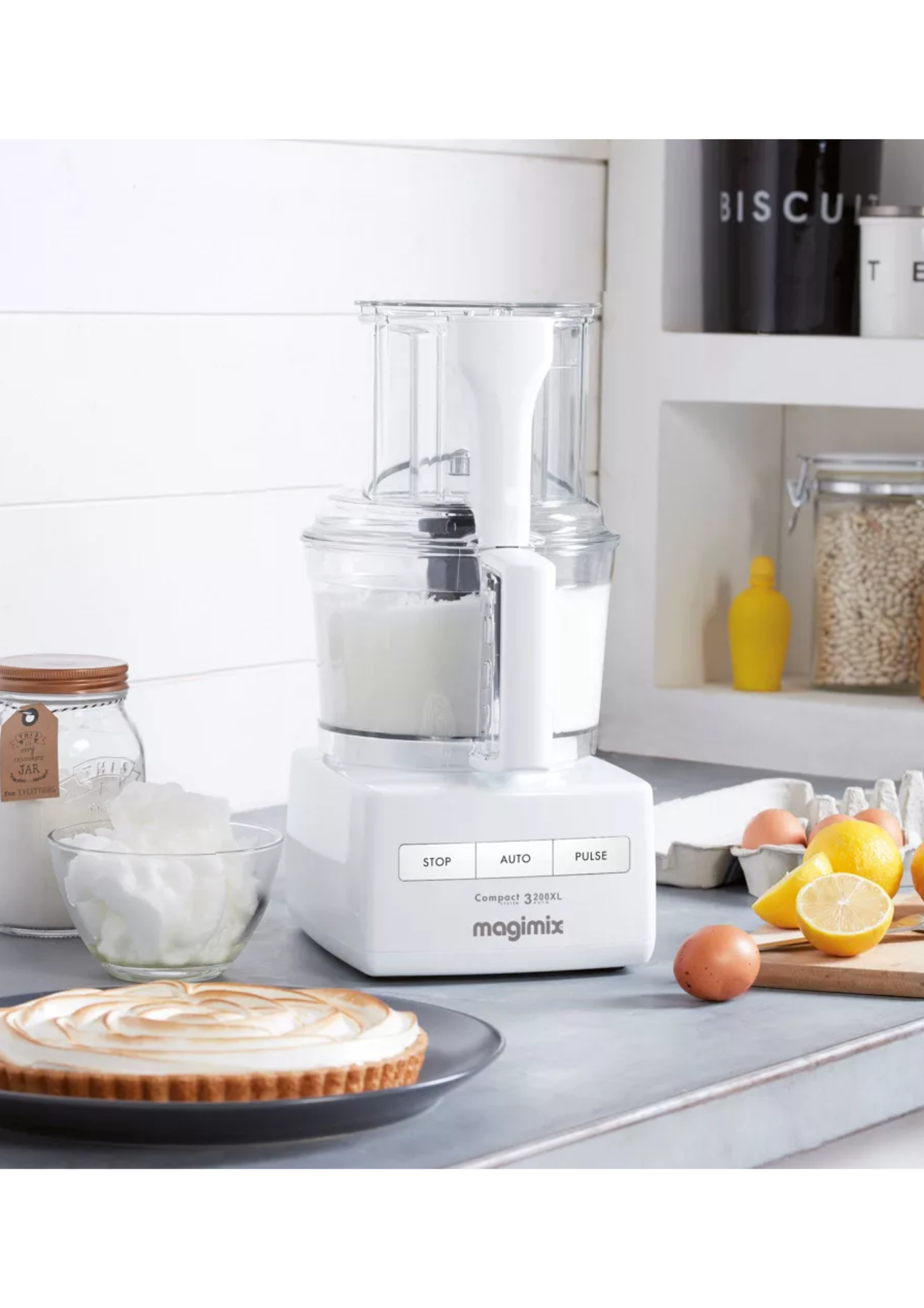 Le Robot Magimix 3200 XL Blanc est un robot de cuisine compact. Le 3200 XL est équipé de nombreux accessoires avec 3 cuves pour les préparations du quotidien pour 2 à 4 personnes.