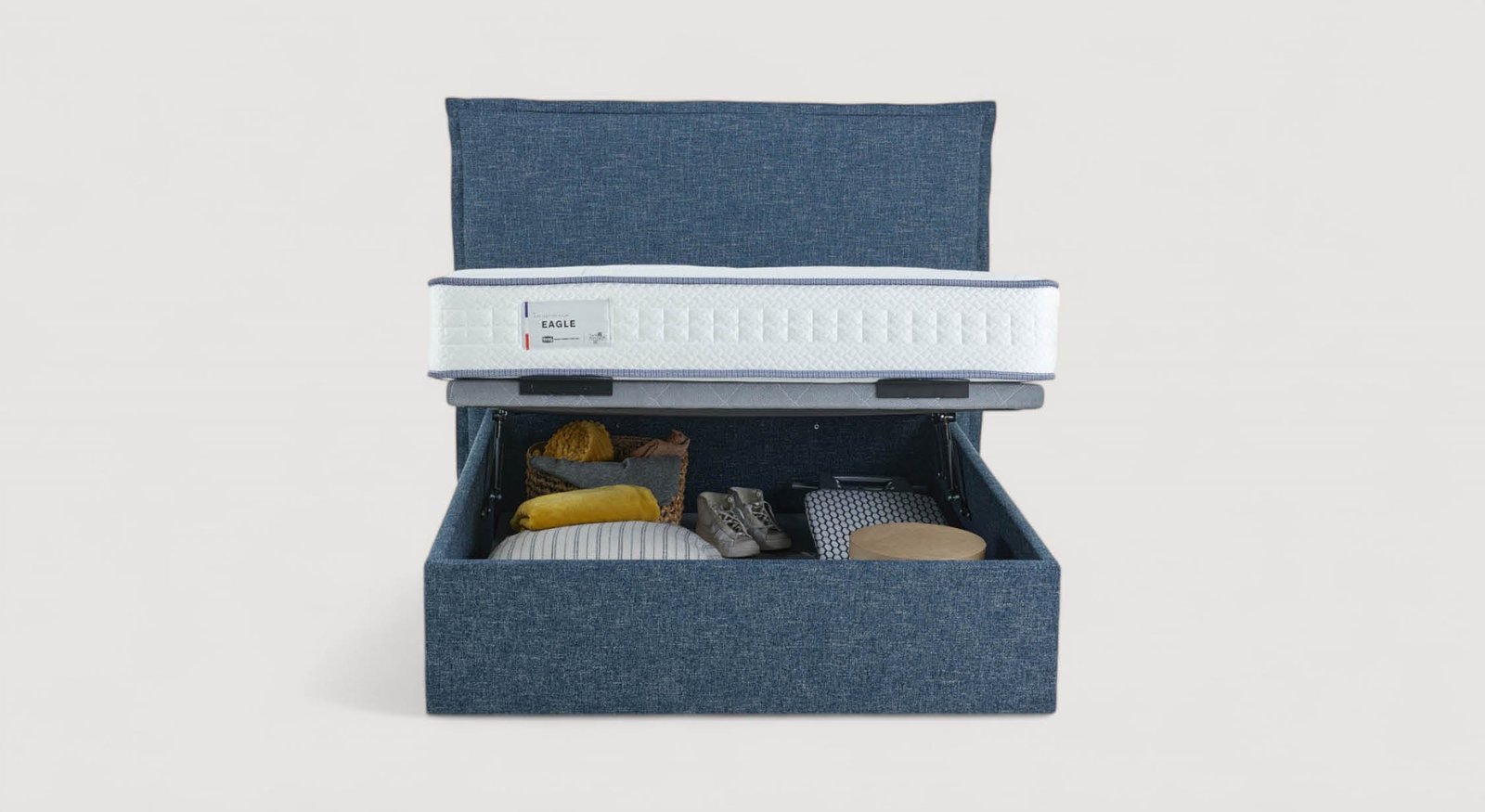 Adoptez le sommier coffre grande capacité ELISE et offrez-vous un gain de place supplémentaire. Ce lit coffre haut dispose d’un coffre spacieux. Conçu en plusieurs colis. il se glisse partout. même les espaces étroits.