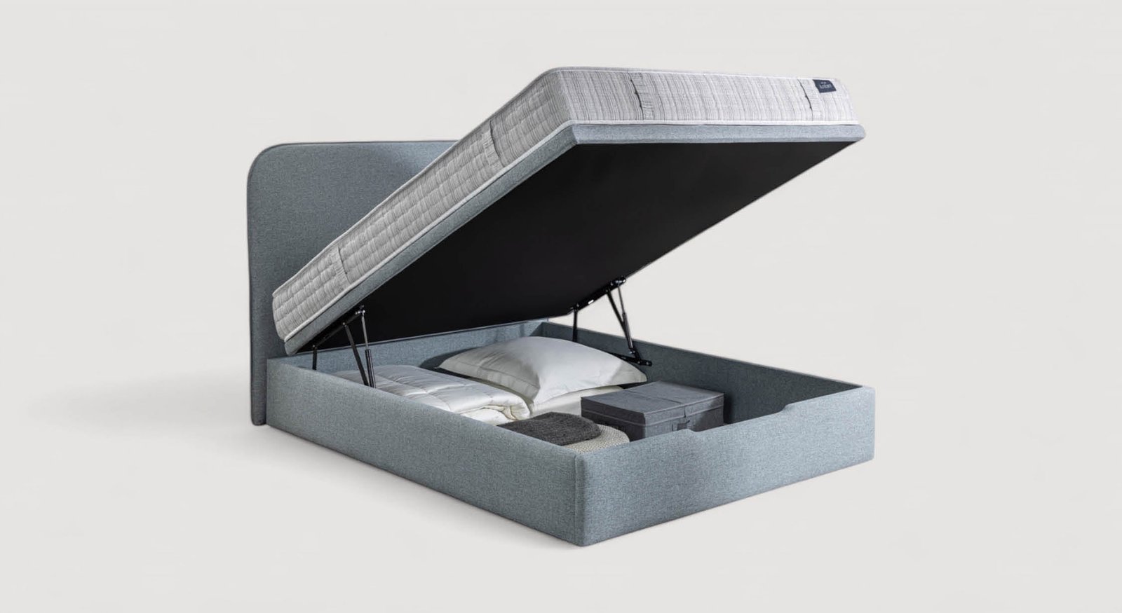 Optez pour le lit coffre grand rangement et haut de gamme MAEL. offrant 28 cm de rangement utile sans séparations pour maximiser l’espace de stockage y compris de grands objets. Découvrez l’un des meilleurs lit coffre.