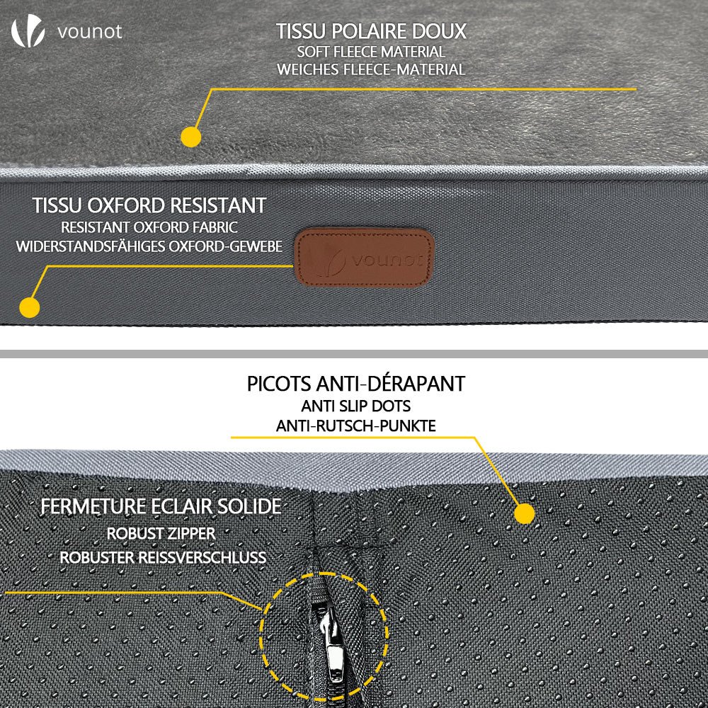 - Sa structure en mousse à mémoire de forme permet de le rouler et de l’emporter partout avec vous. Son tissu oxford résistant et antidérapant vous permet de l’utiliser aussi bien à l’intérieur qu’à l’extérieur. que ce soit dans des cages pour animaux. des sièges de voiture. des canapés. des meubles. etc.