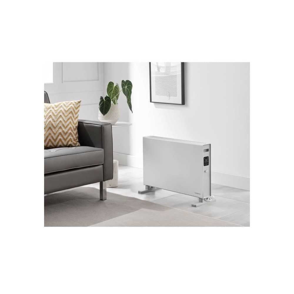 Optez pour le radiateur convecteur mobile électrique OCEANIC de 2000W. avec 2 puissances de chauffe (1250W et 2000W). Son thermostat électronique et sa commande numérique avec affiche LED vous permettent de régler la température de 10 a 35°C. Profitez de ses fonctionnalités pratiques telles que le témoin lumineux de fonctionnement. la fonction antigel. la minuterie jusqu’a 24h. et les protections anti-surchauffe et anti-basculement. Son design blanc mat s’integre parfaitement a votre intérieur.