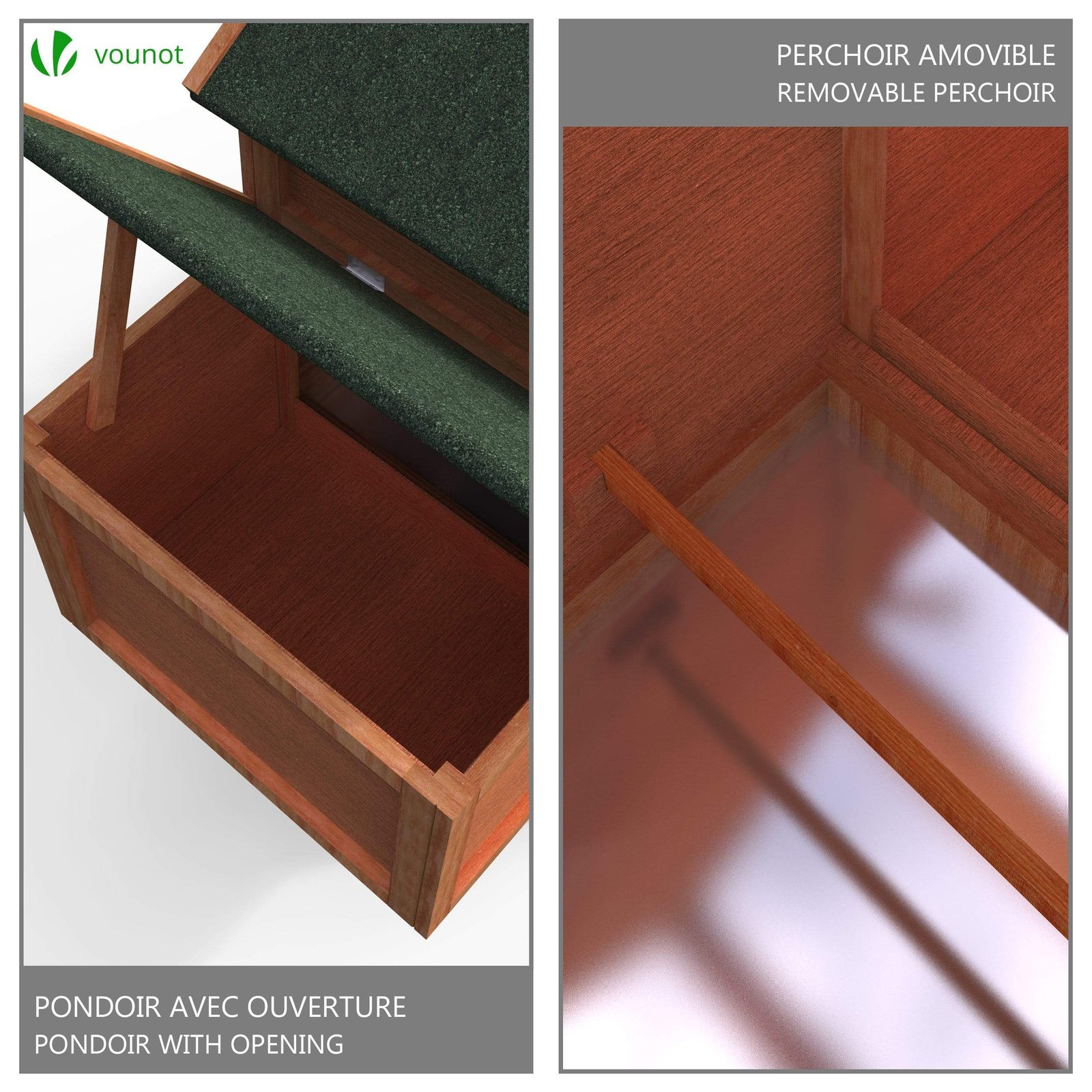 Poulailler en Bois avec Pondoir et Perchoir Accueillant 2 Poules