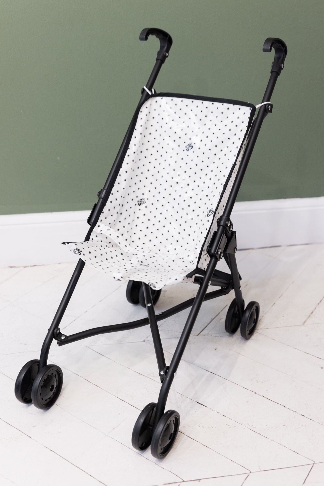 Découvrez la poussette de poupée BONTON en collaboration avec MINIKANE. l’accessoire incontournable pour les enfants qui souhaitent promener leurs poupées avec élégance ! Avec son imprimé enduit étoile noir. l’imprimé embalématique de la marque BONTON. cette poussette pliable allie style et praticité. Offrez à vos enfants un moment de jeu stylé avec cette poussette de qualité. parfaite pour les balades en intérieur comme en extérieur. Dépliée la pousette mesure 63 cm de longeur. 11 cm de largeur et 11 cm de hauteur.