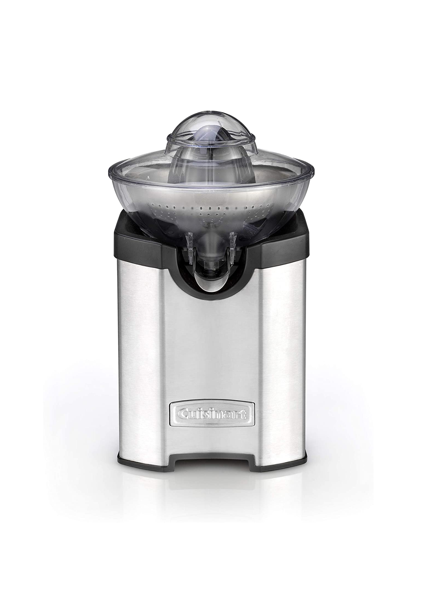 Le presse-agrumes CUISINART est équipé d’un couvercle de protection et d’un filtre en acier de grande surface.