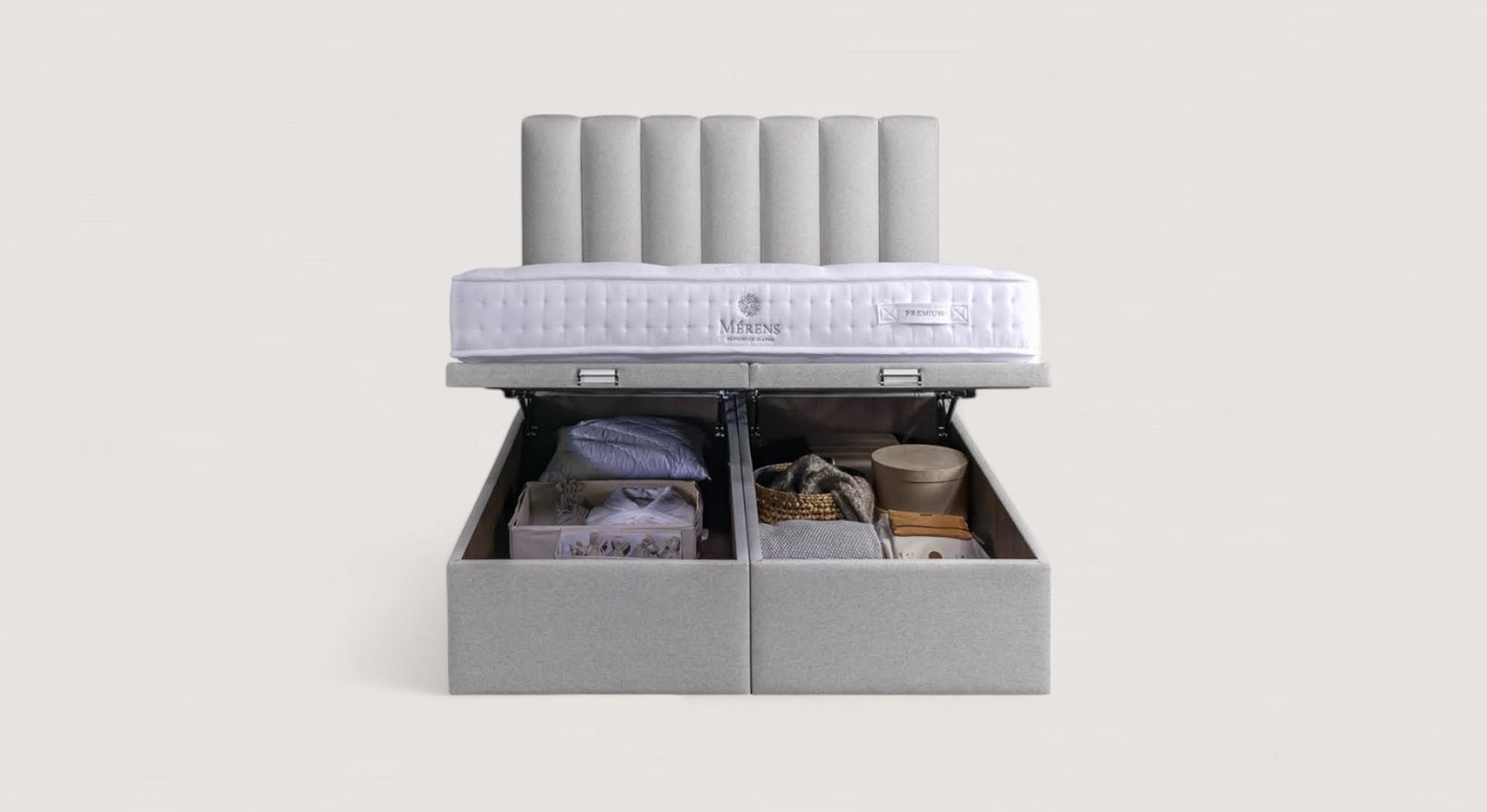 Choisissez le spacieux lit coffre grande hauteur WARREN XXL. une solution de gain de place inégalée. capable de stocker l’équivalent d’une double penderie en toute simplicité.